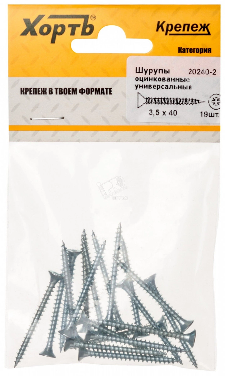 Полное описание: Шуруп универсальный 3,5х40 потайная головка, остроконечный, оцинкованный (19шт)