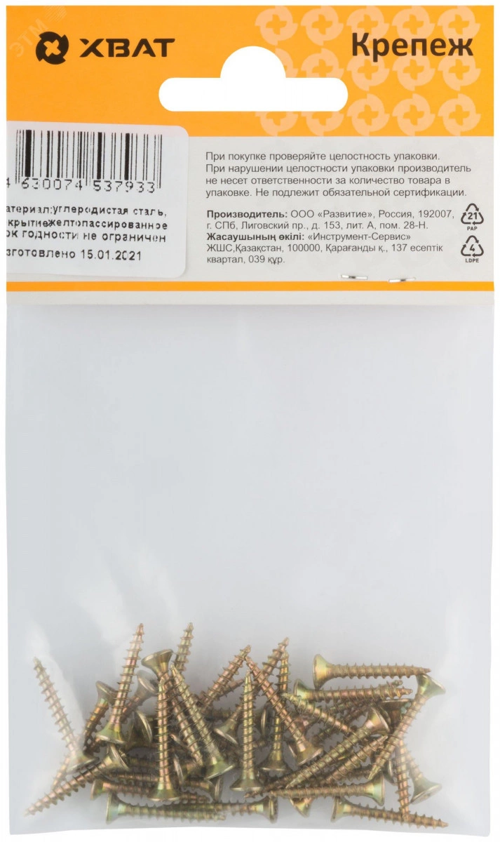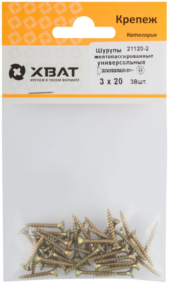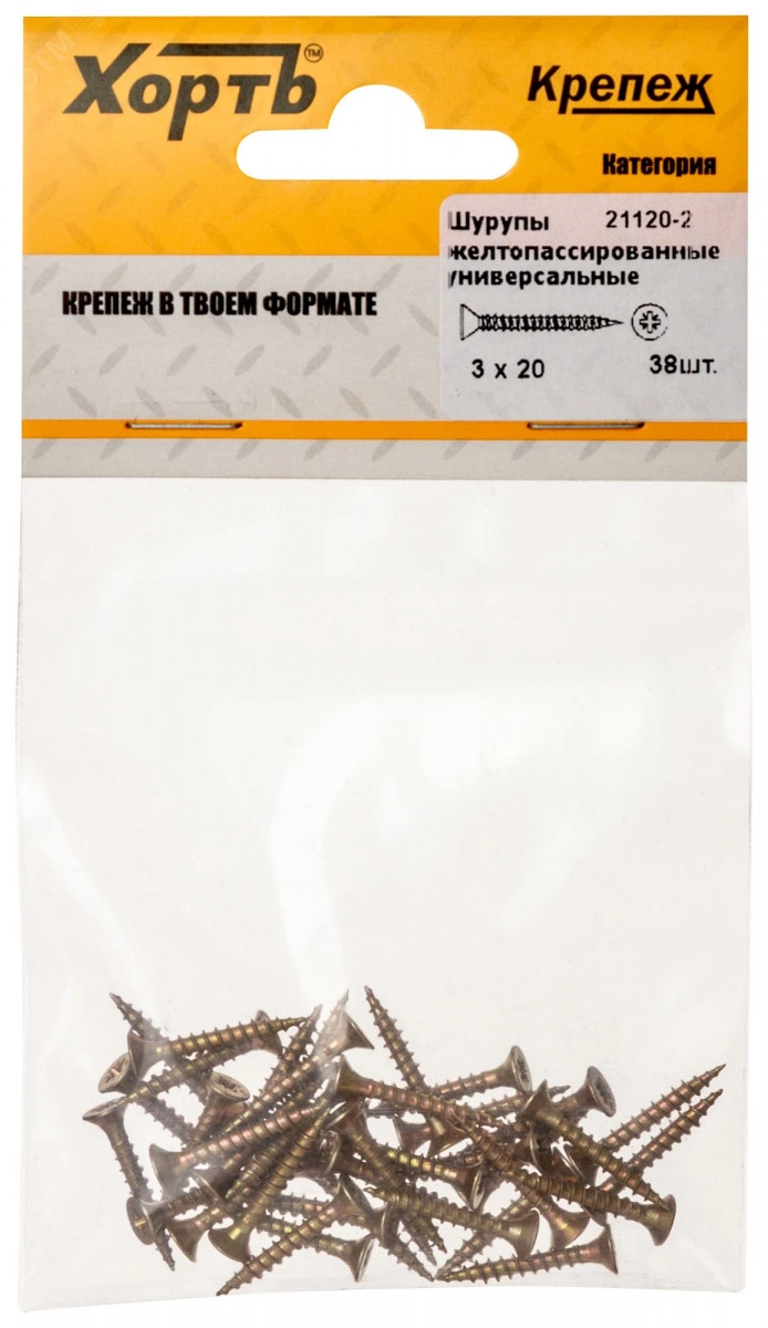 Шуруп универсальный 3х20 потайная головка, остроконечный, желтопассивированный (38шт)