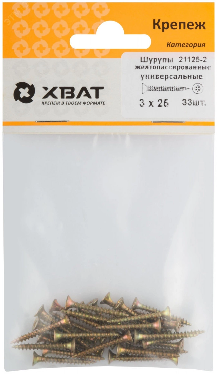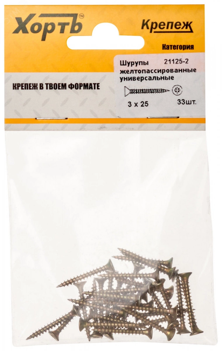 Шуруп универсальный 3х25 потайная головка, остроконечный, желтопассивированный (33шт)