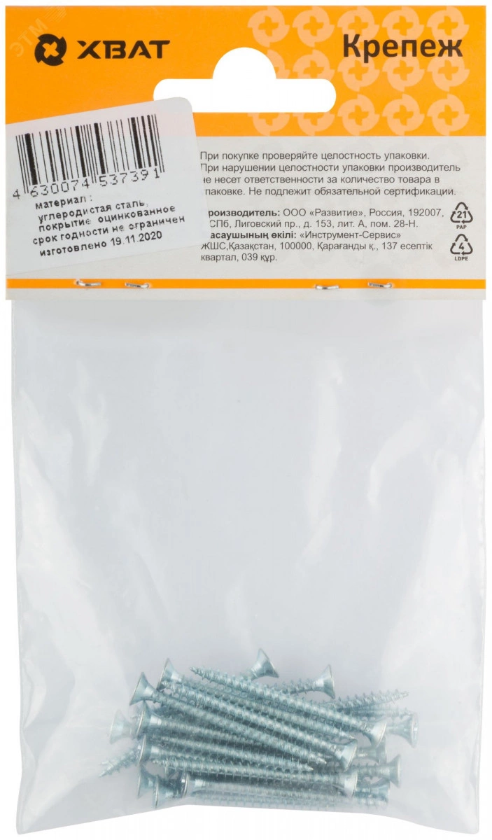 Оцинкованный шуруп - самонарезающее крепежное изделие с потайной головкой и прямым шлицем под обычную отвертку или биту. Широко применяется в мебельном производстве и отделочных работах для прикручивания элементов к деревянному основанию.