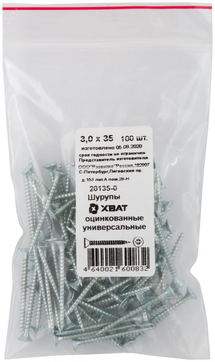 Шуруп универсальный 3х35 потайная головка, остроконечный, оцинкованный (100шт)