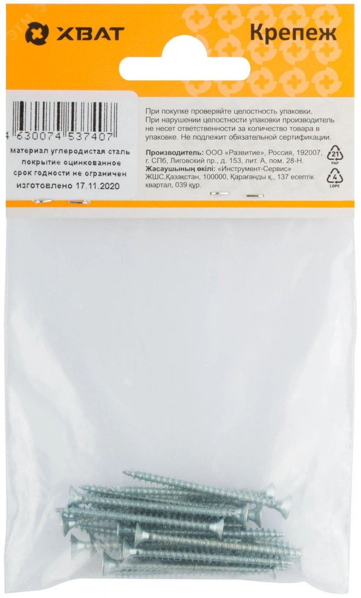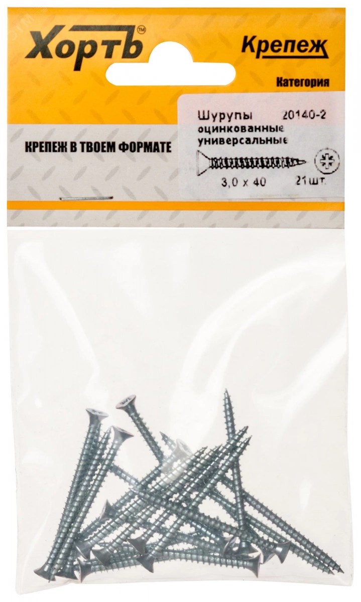 Шуруп универсальный 3х40 потайная головка, остроконечный, оцинкованный (21шт)