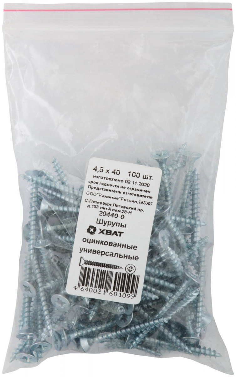 Шуруп универсальный 4,5х40 потайная головка, остроконечный, оцинкованный (100шт)