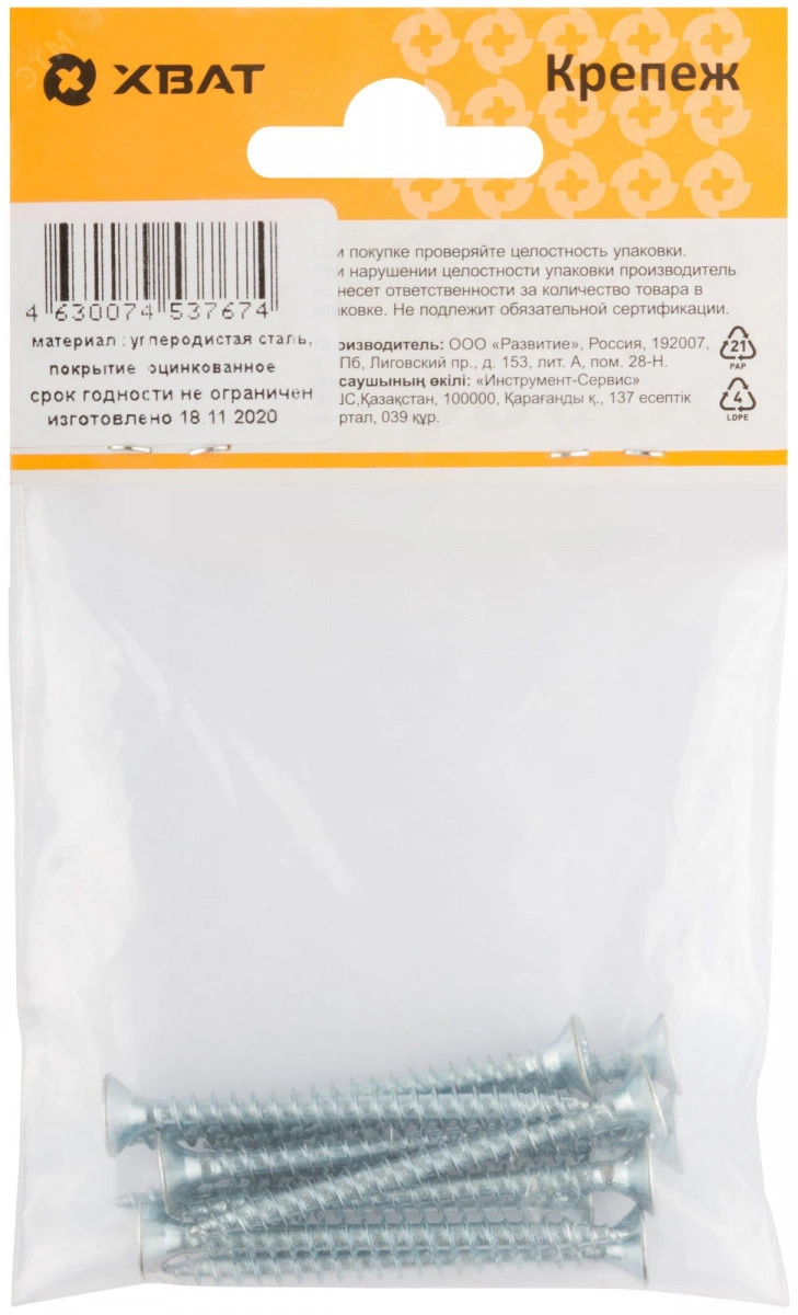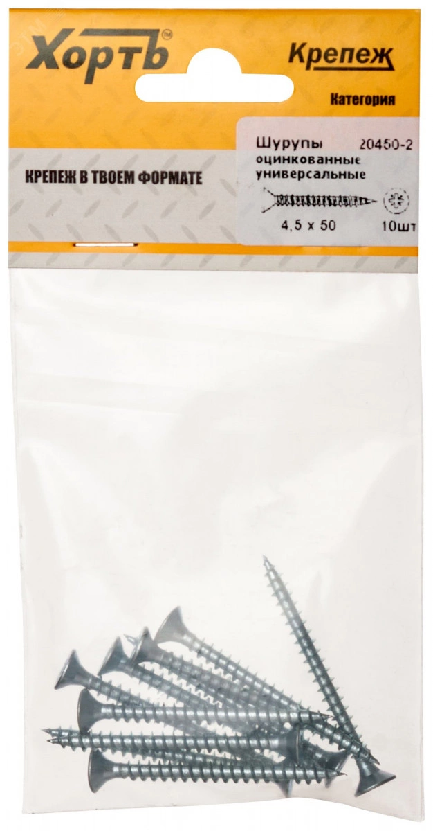 Шуруп универсальный 4,5х50 потайная головка, остроконечный, оцинкованный (10шт)