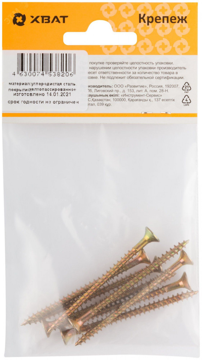 Шуруп универсальный 4,5х60 потайная головка, остроконечный, желтопассивированный (8шт)