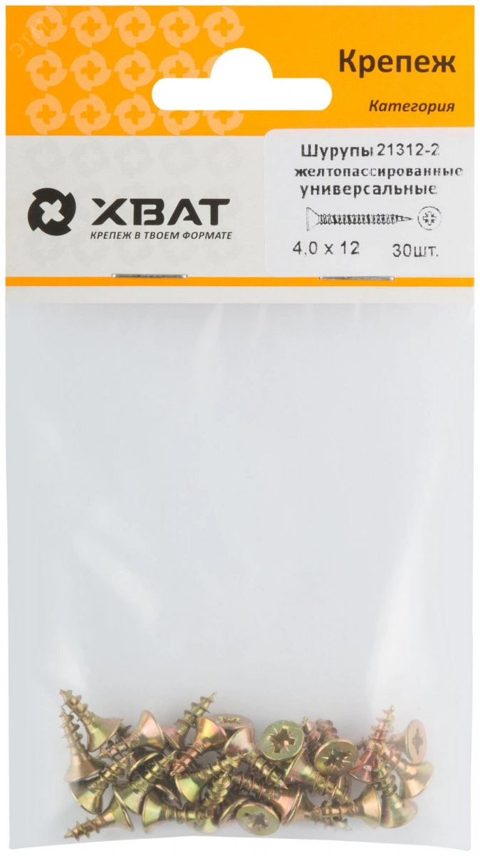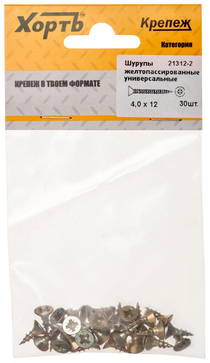 Шуруп универсальный 4х12 потайная головка, остроконечный, желтопассивированный (30шт)