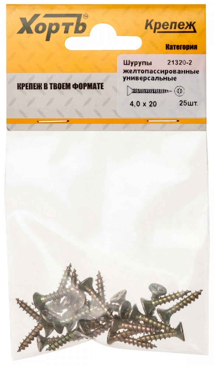 Шуруп универсальный 4х20 потайная головка, остроконечный, желтопассивированный (25шт)