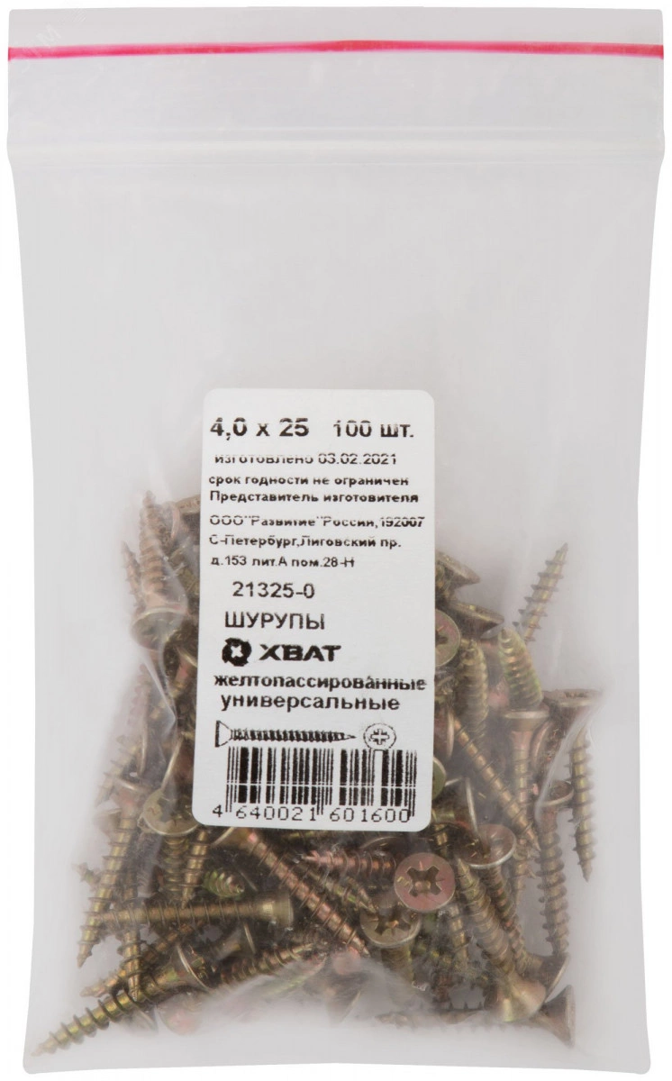 Шуруп универсальный 4х25 потайная головка, остроконечный, желтопассивированный (100шт)