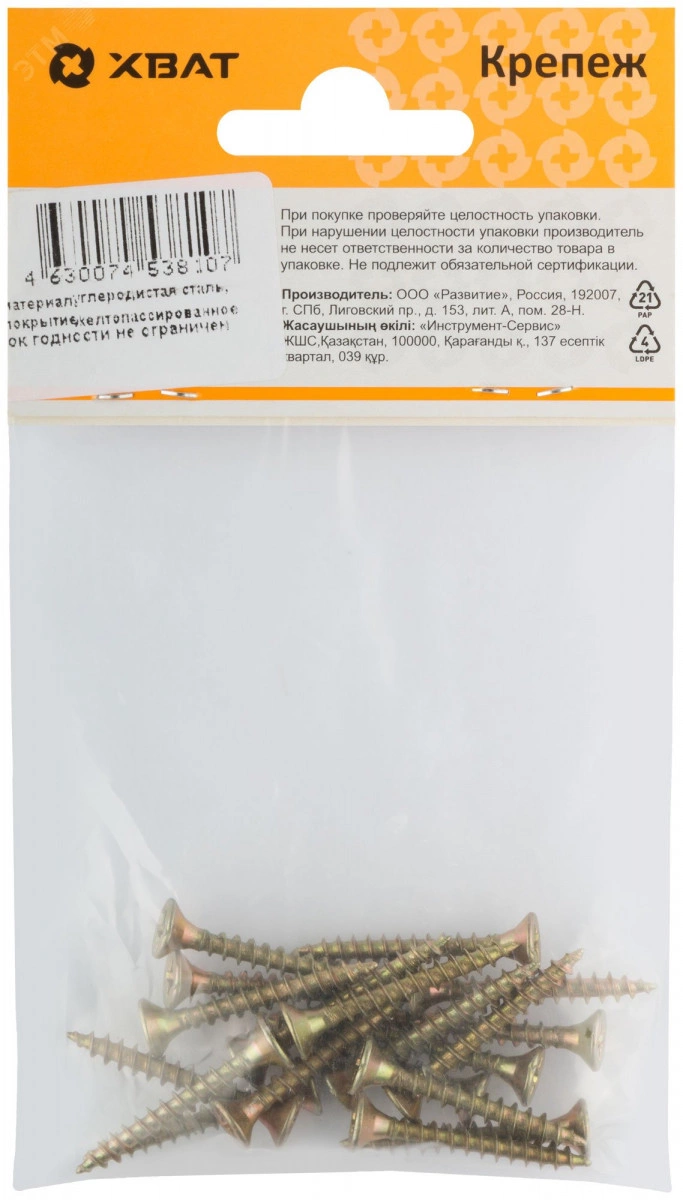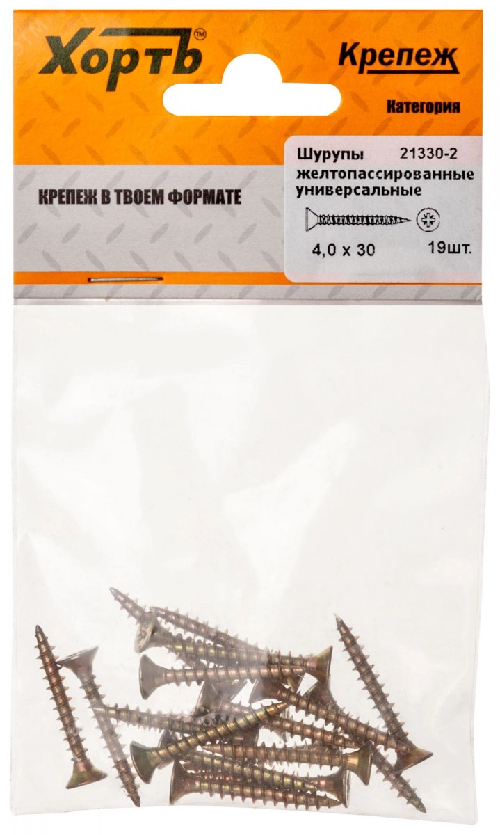 Шуруп универсальный 4х30 потайная головка, остроконечный, желтопассивированный (19шт)