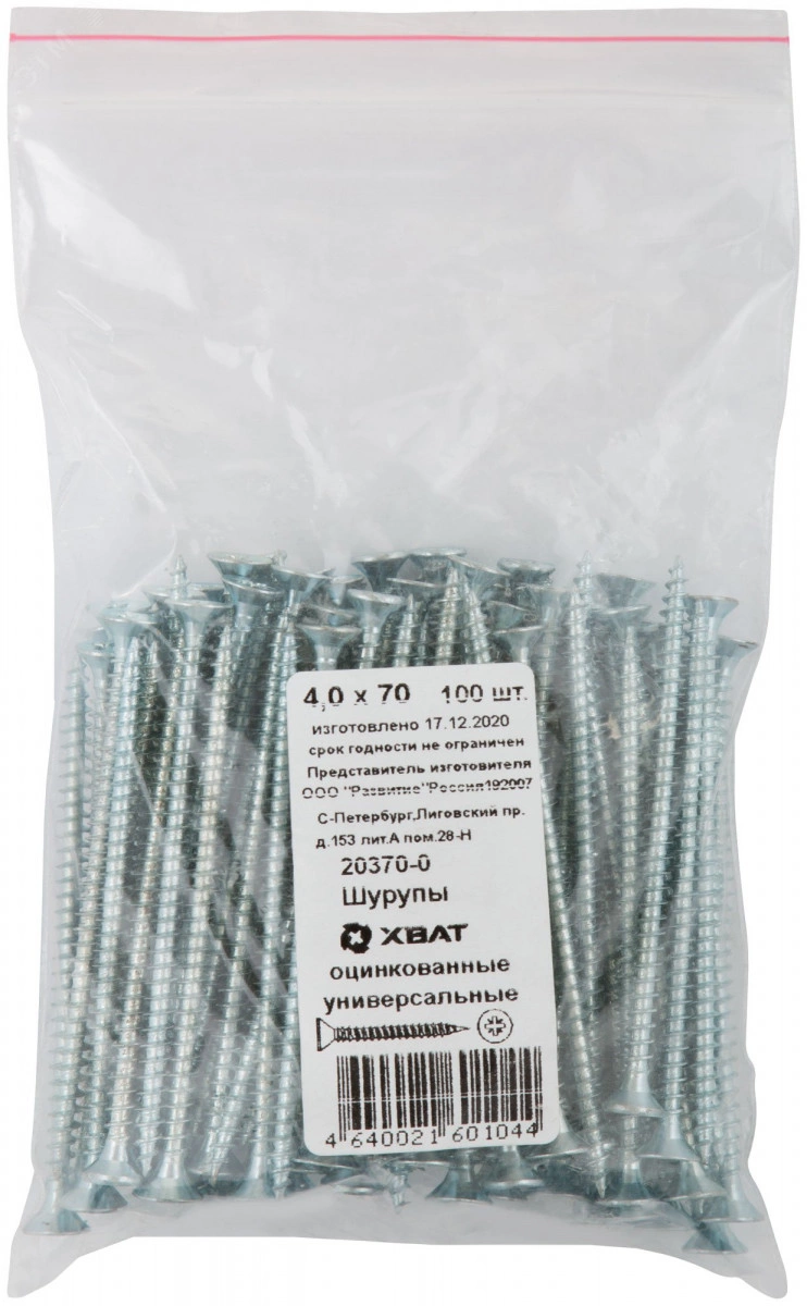 Шуруп универсальный 4х70 потайная головка, остроконечный, оцинкованный (100шт)
