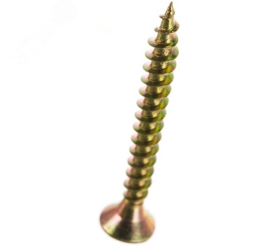 Метиз представляет собой классический остроконечный шуруп. Шляпка оснащена крестообразным шлицем Pozidriv. Метиз оцинкован, что делает его устойчивым к образованию коррозии.