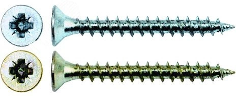 Саморез универсальный SG-Y имеет потайную головку с крестообразным шлицем PZ, крупную накатанную резьбу и острый наконечник. Выполнен из углеродистой стали, покрытие – желтый цинк.