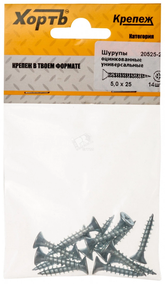Шуруп универсальный 5х25 потайная головка, остроконечный, оцинкованный (14шт)