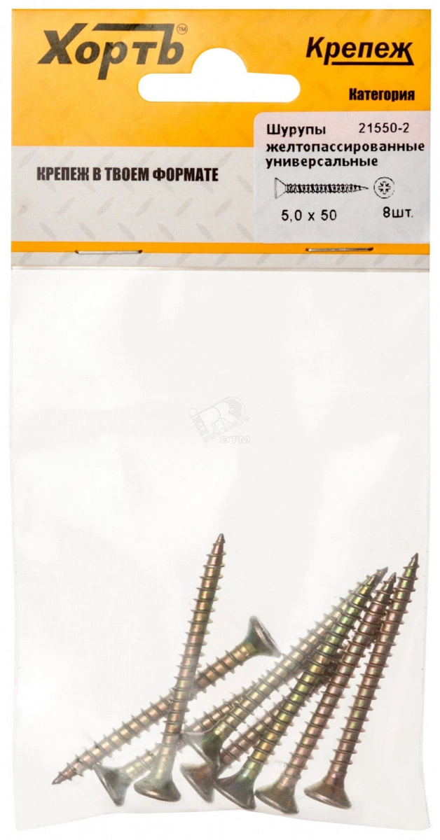 Шуруп универсальный 5х50 потайная головка, остроконечный, желтопассивированный (8шт)