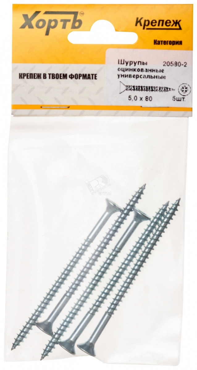 Шуруп универсальный 5х80 потайная головка, остроконечный, оцинкованный (5шт)