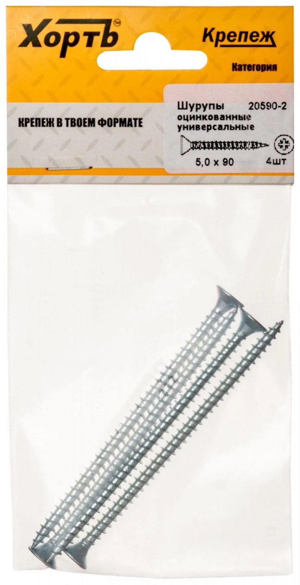Шуруп универсальный 5х90 потайная головка, остроконечный, оцинкованный (4шт)