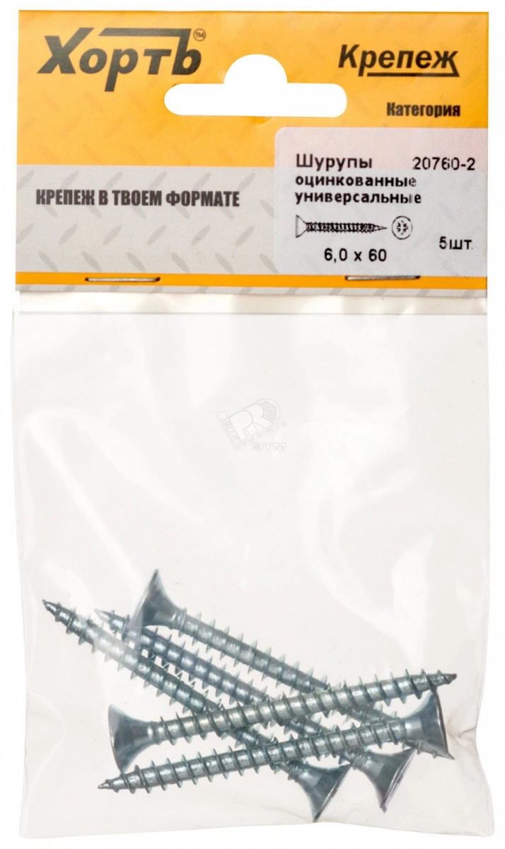 Шуруп универсальный 6х60 потайная головка, остроконечный, оцинкованный (5шт)