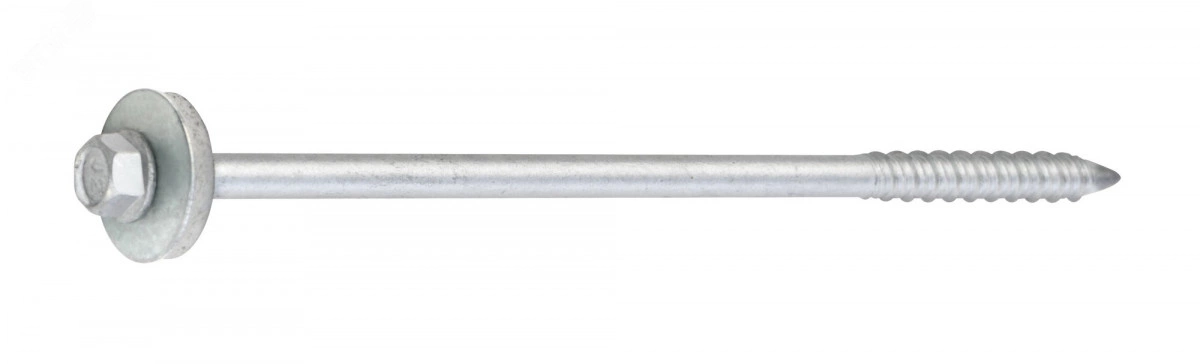 У самореза есть резьбовой стержень с заострением на конце и шестигранная головка с буртом. Установлена уплотнительная прокладка. Буртик на шляпке увеличит площадь контакта с сэндвич-панелью, не допуская ее вдавливания при обжиме. Сталь SAE 1022, имеет антикоррозийное покрытие
