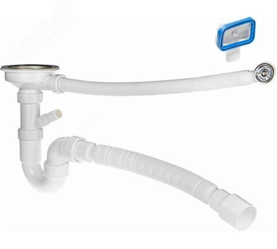 Сифон для выпуска 90-94 мм, 3.1/2x40, с нерж.решеткой, переливом, гофротрубой 40x40/50, дополнительным патрубком с отводом для с/м ИС.110683 устанавливается в кухонные мойки с диаметром выпускного отверстия 90-94 мм. Выполнен сифон из первичного полипропилена, что гарантирует высокую прочность, надежность и долговечность изделия. Минимальная и максимальная высота расположения сифона - 250-270 мм. Выгодно отличает данный сифон два комплектных патрубка - один обычный, второй с отводом для подключения сливных шлангов бытовой техники. Появление стиральной машины не станет неожиданностью. Штуцер отвода позволяет подключить сливные шланги 19 и 22 мм.