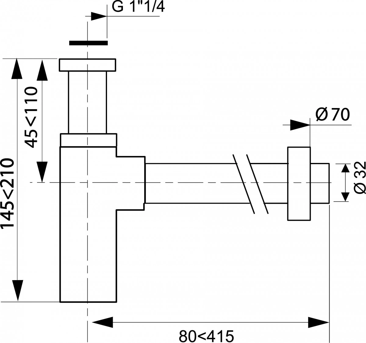 Сифон CAREIS для раковины без выпуска 1'1/4 x 32 мм отвод с розеткой, латунь в хроме