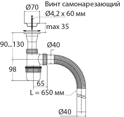 Сифон для моек и раковин бутылочный с нержавеющей чашкой 70 мм белый