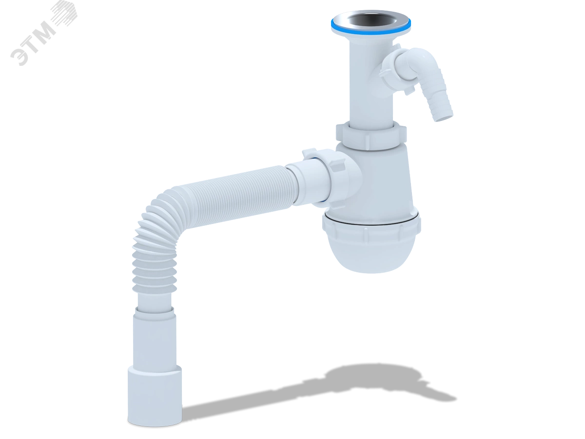 Сифон для мойки АНИ Грот 1 1/2' x 40 литой выпуск с отводом для стиральной машины с гибкой трубой 40х40/50