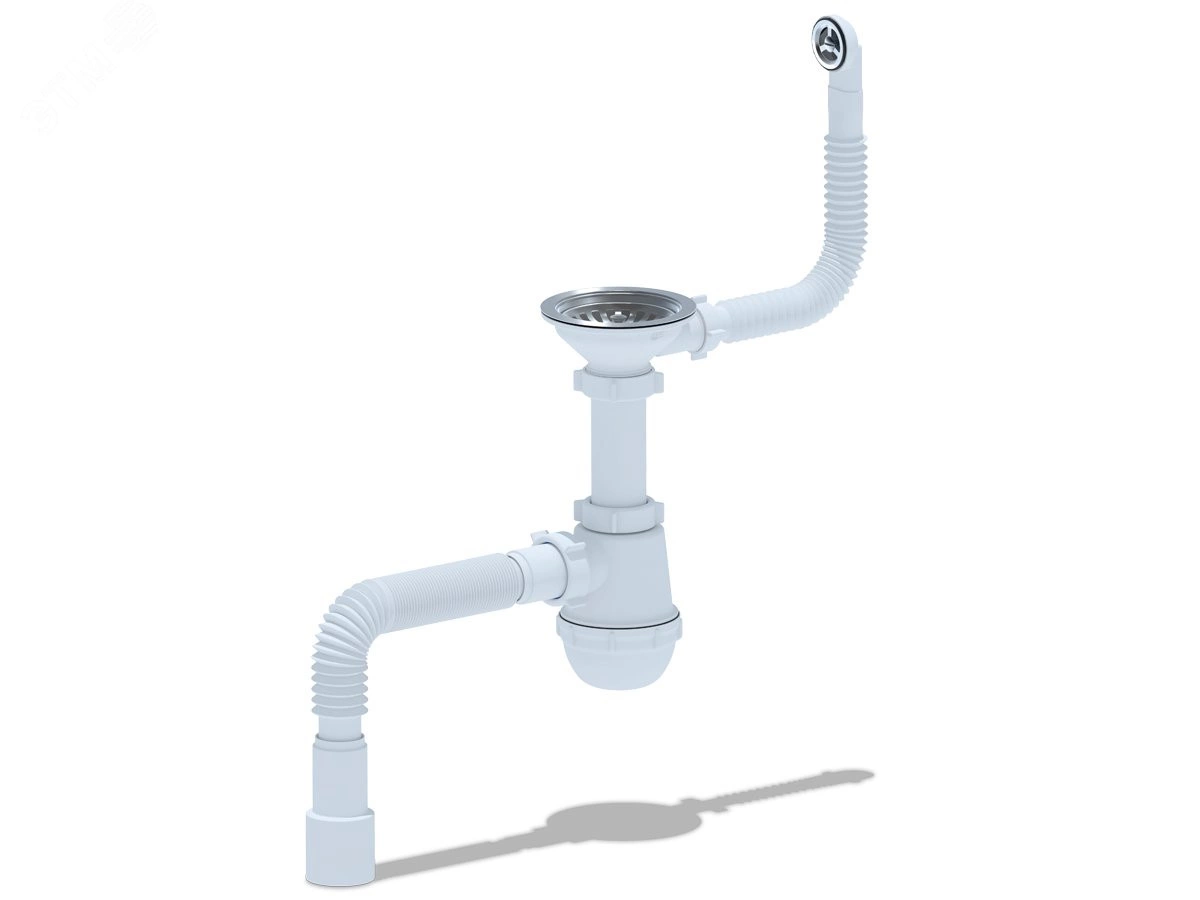 сифон для мойки ани грот 3 1/2' x 40 с гибким переливом, круглый для мойки и гофрированной трубой 40х40/50