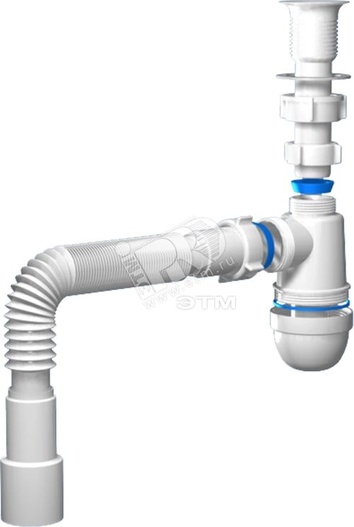 Сифон для мойки АНИ Варяг пластмассовый выпуск с гибкой трубой 40х40/50