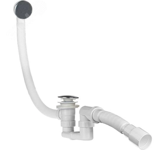 Сифон для ванны для выпуска 50 мм, клик-клак, с нерж.решеткой, переливом, гофротрубой 40x40/50 ИС.110693 устанавливается в ванны и глубокие душевые поддоны с диаметром выпускного отверстия 50 мм. Выполнен сифон из первичного полипропилена, что гарантирует высокую прочность, надежность и долговечность изделия. Выпуск с механизмом клик-клак позволяет открывать и закрывать сливное отверстие простым нажатием кнопки. Диаметр кнопки 72 мм. Сифон подойдет для ванн с отверстием для перелива 48-56 мм. Длина перелива 590 мм.