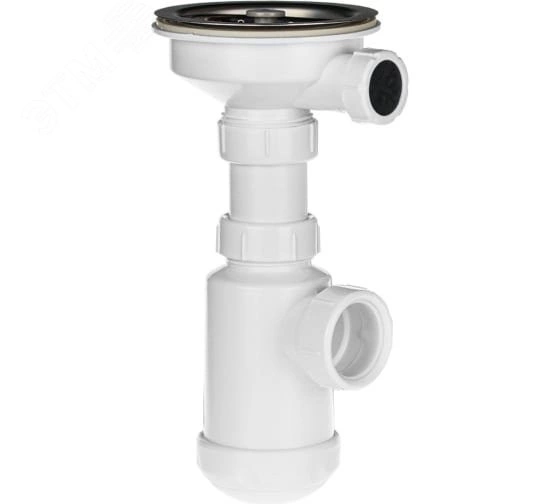 Сифон для выпуска 90-94 мм, 3.1/2''х40, с нерж.решеткой ИС.110689 устанавливается в кухонные мойки с диаметром выпускного отверстия 90-94 мм. Выполнен сифон из первичного полипропилена, что гарантирует высокую прочность, надежность и долговечность изделия. Минимальная и максимальная высота расположения сифона - 230-300 мм. Сифон не комплектуется гофротрубой и трубкой перелива. Резьба подключения перелива 1''. Резьбовая втулка крепления решетки и шток изготовлены из пластика.