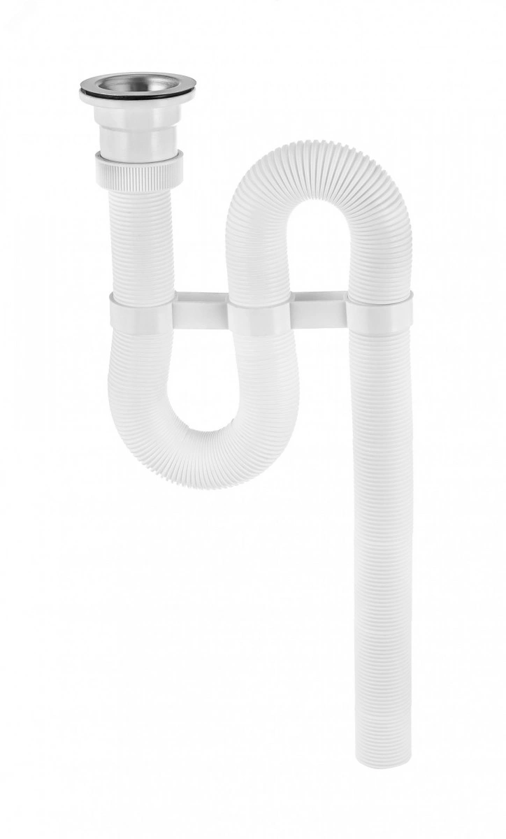 Сифон ЭКОНОМ гофрированный с нержавеющей чашкой D70 мм белый