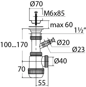 Сифон МИНИ ЭЛИТ для моек и раковин 1'1/2 х 40 мм с нержавеющей чашкой 70 мм и отводом для стиральной или посудомоечной машины