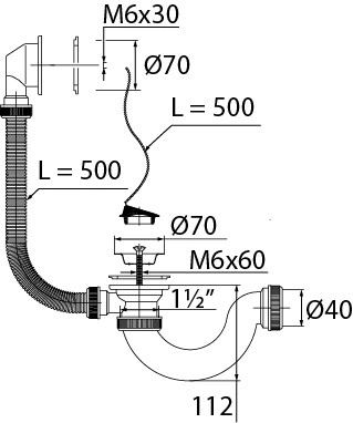 Сифон МИНИ ЭЛИТ для ванн с нержавеющим чашками, без отвода 1'1/2 - D40