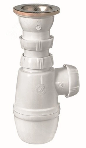 Сифон предназначен для слива воды из раковины или умывальника. Конические уплотнители выполнены из полимерного материала сэвилена, устойчивость к старению, повышенный срок эксплуатации. Прокладка между корпусом и стаканом расположена в специальном гнезде и в процессе установки и прочистки она не потеряется и не деформируется от механических воздействий. Эстетичный вид