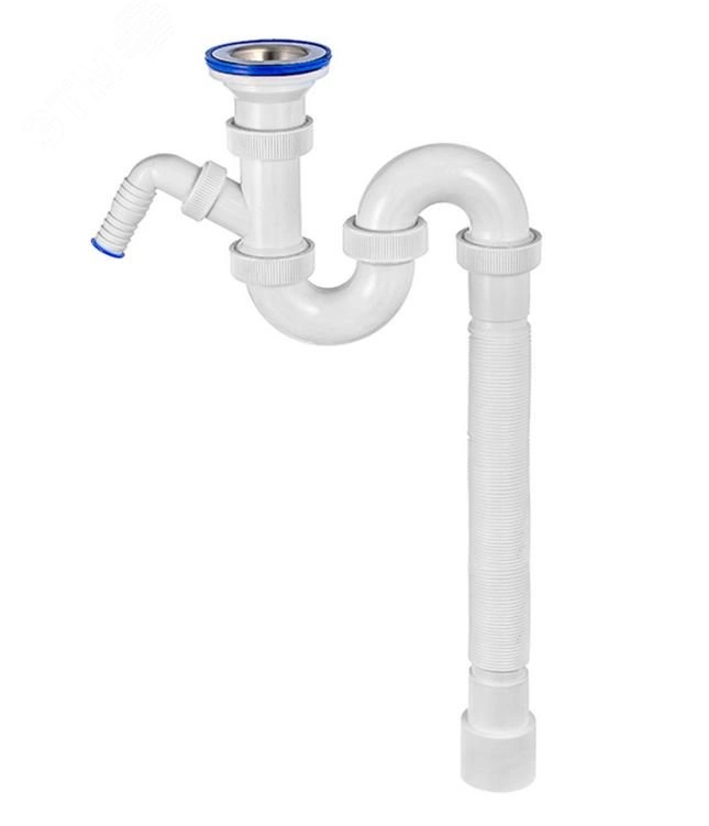 Сифон ТРУБНЫЙ для моек и раковин прямоточный без выпуска с отводом и с гофротрубой L800 мм 1'1/2 - D40/50