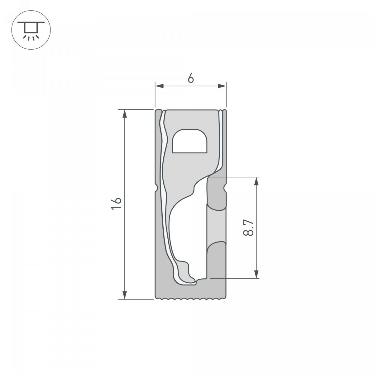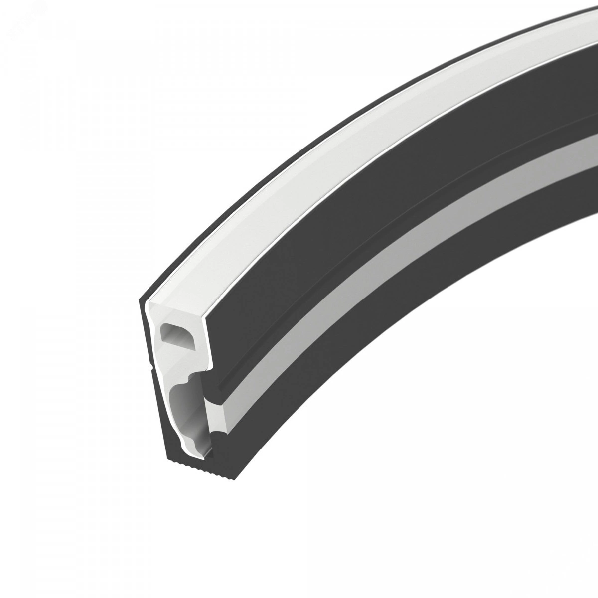 Цельнолитой силиконовый гибкий профиль с УФ-защитой, верхняя часть - белая матовая, стороны - черные матовые. Габаритные размеры профиля составляют 5000 ммв длину, 6 ммв ширину и 16 ммв высоту. Горизонтальный изгиб SIDE, минимальный радиус изгиба 30 мм уголизлучения 150 град. Для удобства установки ленты по всей длине профиля протянута нить. Площадка для установки светодиодных лент позволяет использовать ленту шириной от 6 до 8 мм высотой до 2,9 мми мощностью до 10 Вт/м. Для установки во влажных помещениях необходима герметизация при помощи двухкомпонентного эпоксидного герметика. Класс пылевлагозащиты – IP65 (при соблюдении технологии герметизации). Этот продукт представляет отличное решение для создания современных световых проектов и обеспечивает надежную и стильную основу для установки светодиодов. Для накладного монтажа на 1 метр профиля рекомендуем использовать не менее 5-ти держателей.