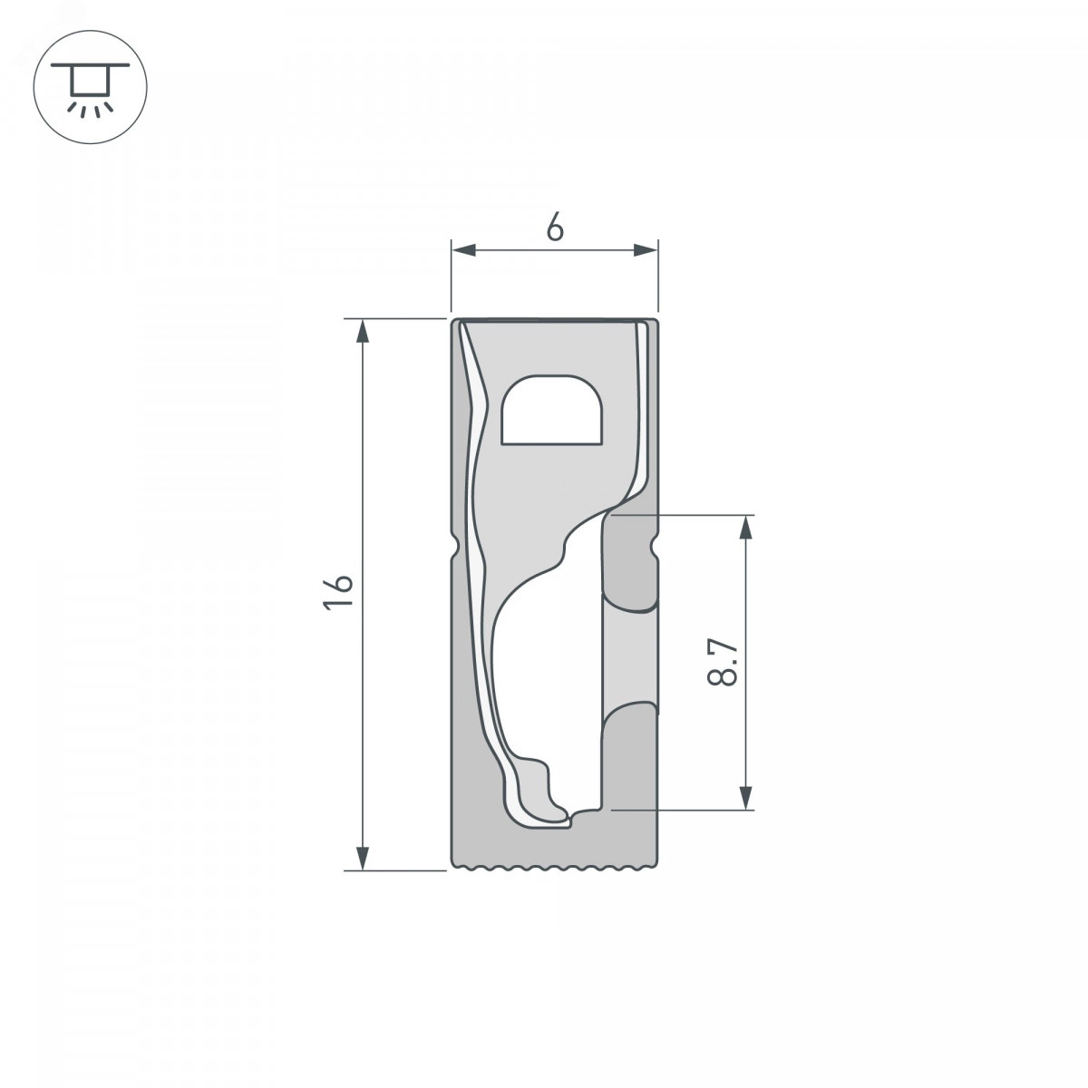Цельнолитой силиконовый гибкий профиль черного цвета с УФ-защитой. Габаритные размеры профиля составляют 5000 ммв длину, 6 ммв ширину и 16 ммв высоту. Горизонтальный изгиб SIDE, минимальный радиус изгиба 30 мм уголизлучения 150 град. Для удобства установки ленты по всей длине профиля протянута нить. Площадка для установки светодиодных лент позволяет использовать ленту шириной от 6 до 8 мм высотой до 2,9 мми мощностью до 10 Вт/м. Это обеспечивает гибкость в выборе светодиодных лент и создает потрясающие световые решения. Для установки во влажных помещениях необходима герметизация при помощи двухкомпонентного эпоксидного герметика. Класс пылевлагозащиты – IP65 (при соблюдении технологии герметизации). Этот продукт представляет отличное решение для создания современных световых проектов и обеспечивает надежную и стильную основу для установки светодиодов. Для накладного монтажа на 1 метр профиля рекомендуем использовать не менее 5-ти держателей.