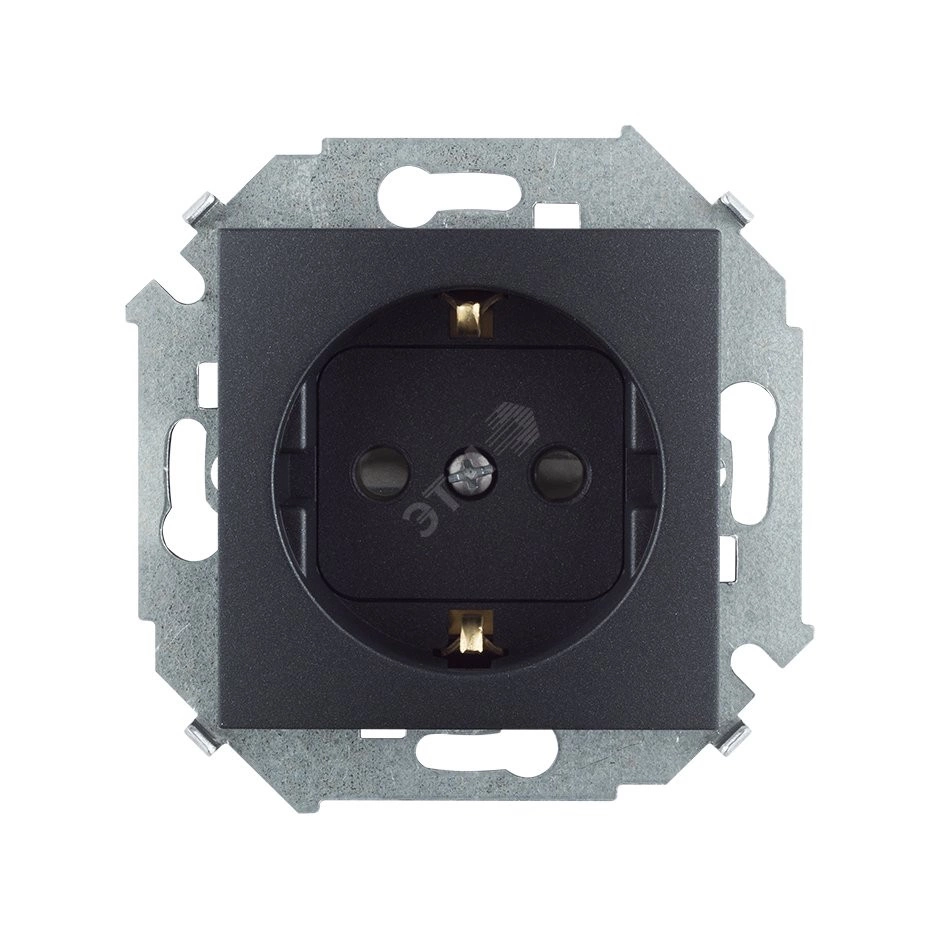 Simon15 Розетка 2Р+Е Schuko 16А 250В со шторками винтовой зажим графит