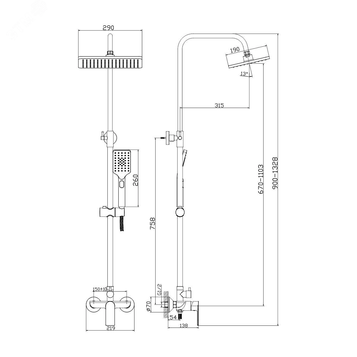 Душевая система 2-х функциональная (в комплекте со шлангом и душевой лейкой) GOLDEN FOX, серия Broads. Корпус-латунь. Покрытие-никель-хромовое. Цвет-хром. Высота штанги - 727-1104 мм. Вылет штанги-470мм. Тропическая лейка-прямоугольной формы, раз-ры 190х290х55,5 мм. Лейка для душа (ручная)-прямоугольной формы, раз-ры 270х81х44,5 мм, 3-х режимная. Шланг-длина 150 см. Картридж-Wanhai, 35 мм, пластиковый с керамическими пластинами. Стойка-нержавеющая сталь. Корпус смесителя-латунь. Дивертор с керамическими пластинами (угол поворота 360 градусов). В комплекте-эксцентрики и декоративные накладки.