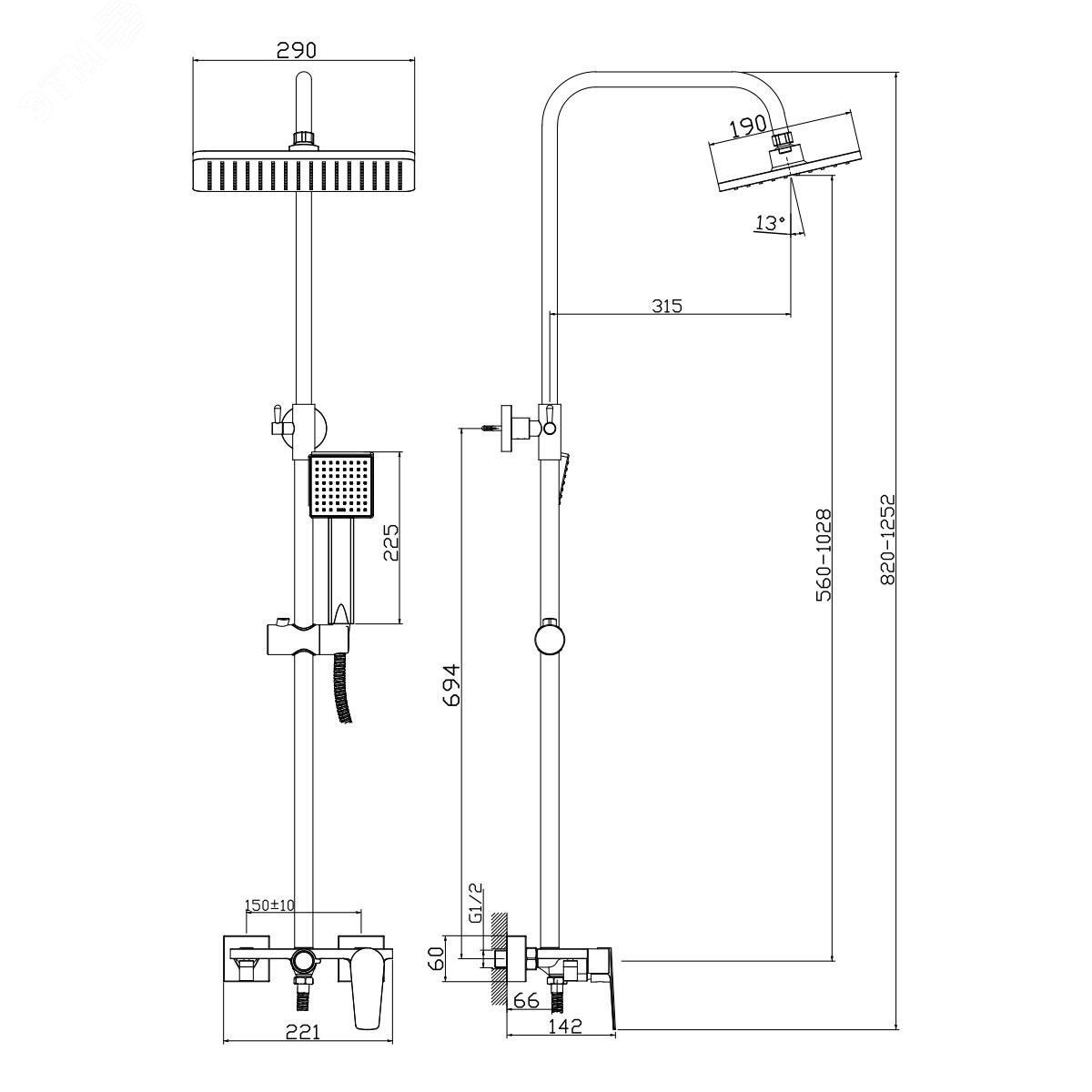 Душевая система 2-х функциональная GOLDEN FOX, серия Yorkshire Dales. Смеситель-латунь. Цвет-хром. Картридж-Wanhai, 35 мм, с керамическими пластинами. Дивертор с керамическими пластинами. Тропическая лейка-квадратной формы, раз-ры 200х200х54,5 мм. Штанга-нержав. сталь, 715-979 мм. Выступ штанги-329 мм. Лейка для душа (ручная)-квадратной формы, раз-ры 231х81 мм. Шланг-длина 1,5 м. В комплекте-эксцентрики и декоративные накладки.