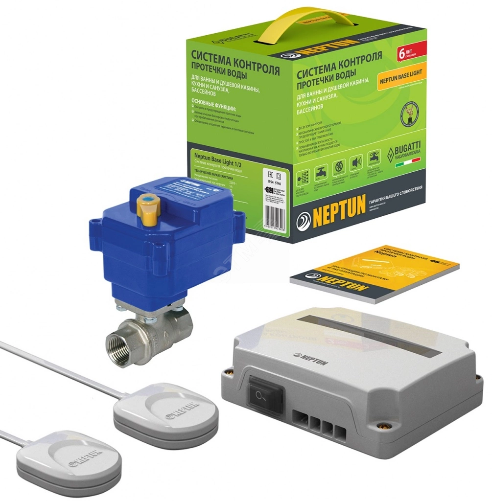 Система контроля протечки воды Neptun Base Light предназначена для установки в квартиры с газовой колонкой, где подведено только холодное водоснабжение (в комплекте один кран). Система заблокирует подачу воды до устранения причин протечки и проинформирует о возникшей аварии звуковым и световым сигналами.