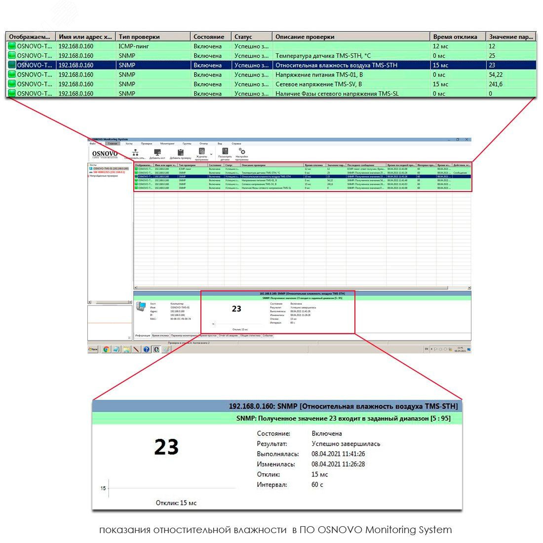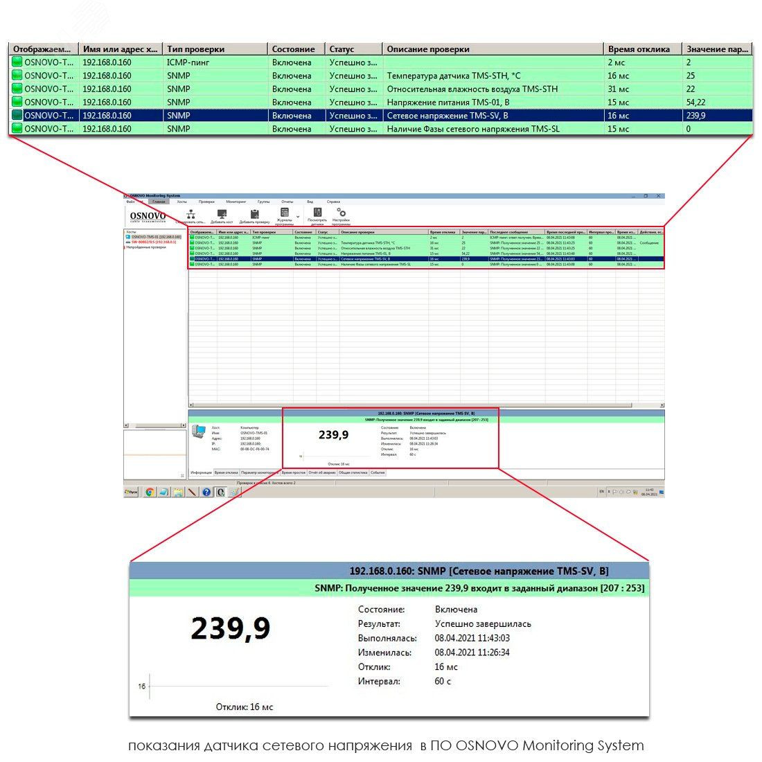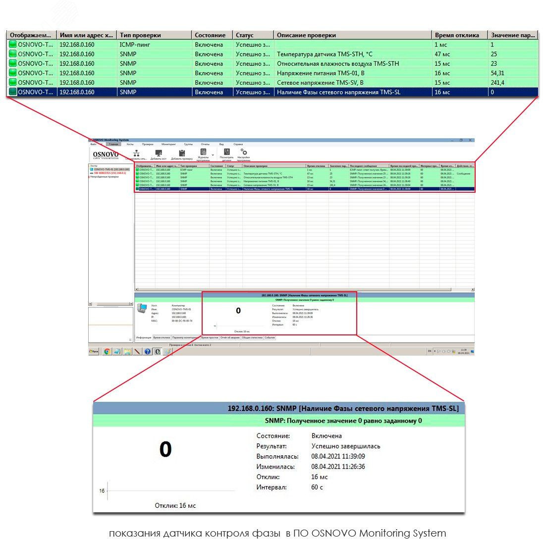 OSNOVO Monitoring System 100 — это мощное программное обеспечение для мониторинга температуры, влажности, напряжения, мощности, PoE, фазы и других параметров. Оно взаимодействует с контроллерами по протоколу SNMP и обеспечивает проверку по различным протоколам, таким как SNMP, TCP, HTTP, ICMP, FTP, WMI, ARP и NetBIOS. Система позволяет формировать базу мониторинга, программировать проверки по шаблонам, создавать списки и расписания проверок, а также отправлять результаты проверок и тестов на электронную почту. Кроме того, она поддерживает звуковое оповещение и уведомления по SMS, передачу сообщений через мессенджеры Slack и Telegram, настройку реагирования на события и исключение ложных тревог.