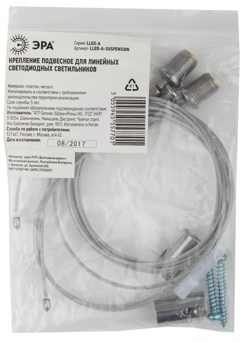 Система подвеса светильников LLED-А-SUSPENSION В комплекте два металлических троса длиной 1м, крепежные элементы.Скоба в комплект не входит.