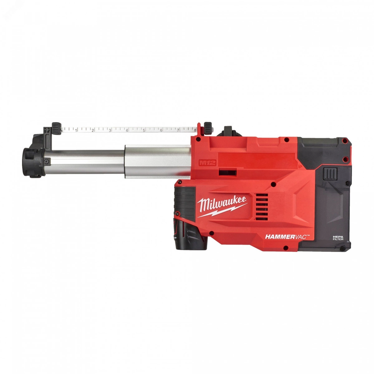 Подойдет для всех SDS-plus перфораторов MILWAUKEE и для большинства перфораторов с диаметром шейки патрона 41-61 мм. У насадки имеется одна рукоятка, которую можно закрепить как на правую, так и на левую сторону. Обеспечивает время работы более 40 минут на одном заряде аккумулятора M12 B2 (2.0 Ач). Благодаря телескопическому строению сопла может работать с бурами SDS-plus до 210 мм длиной. Регулируемый индикатор глубины бурения позволит настроиться под разные задачи, 2 сменных сопла со щетками позволят покрыть диаметры бурения до 30 мм ( 5-16 мм, 16-30 мм), 2 режима работы пылесоса - постоянная работа и работа во время бурения. Автоматическое откладывание выключения на 5 секунд для прочистки отверстия после бурения. Оснащена фильтром HEPA H13 и механизмом прочистки фильтра для повышения производительности и продления срока службы фильтра