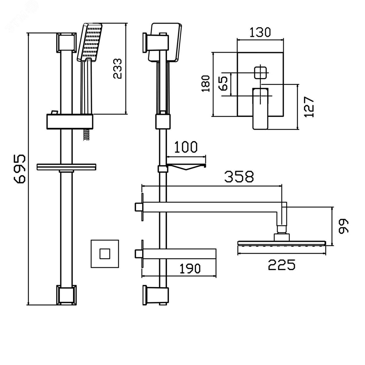 Встраиваемая душевая система скрытого монтажа GOLDEN FOX, серия Exmoor. Корпус-латунь. Покрытие-никель-хромовое. Цвет- хром. Картридж-Wanhai, 35 мм, пластиковый с керамическими пластинами. Дивертор с керамическими пластинами. Излив- литой, длина – 185 мм. Тропическая лейка-прямоугольной формы, раз-ры 190х290х55,5 мм. Лейка для душа (ручная) прямоугольной формы, раз-ры 270х81х44,5 мм, 3-х режимная. Шланг- длина 1,5 м. Стойка для душа-нержавеющая сталь. Мыльница-ABS-пластик, длина – 150 мм, ширина – 100 мм. В комплекте-эксцентрики и декоративные накладки.