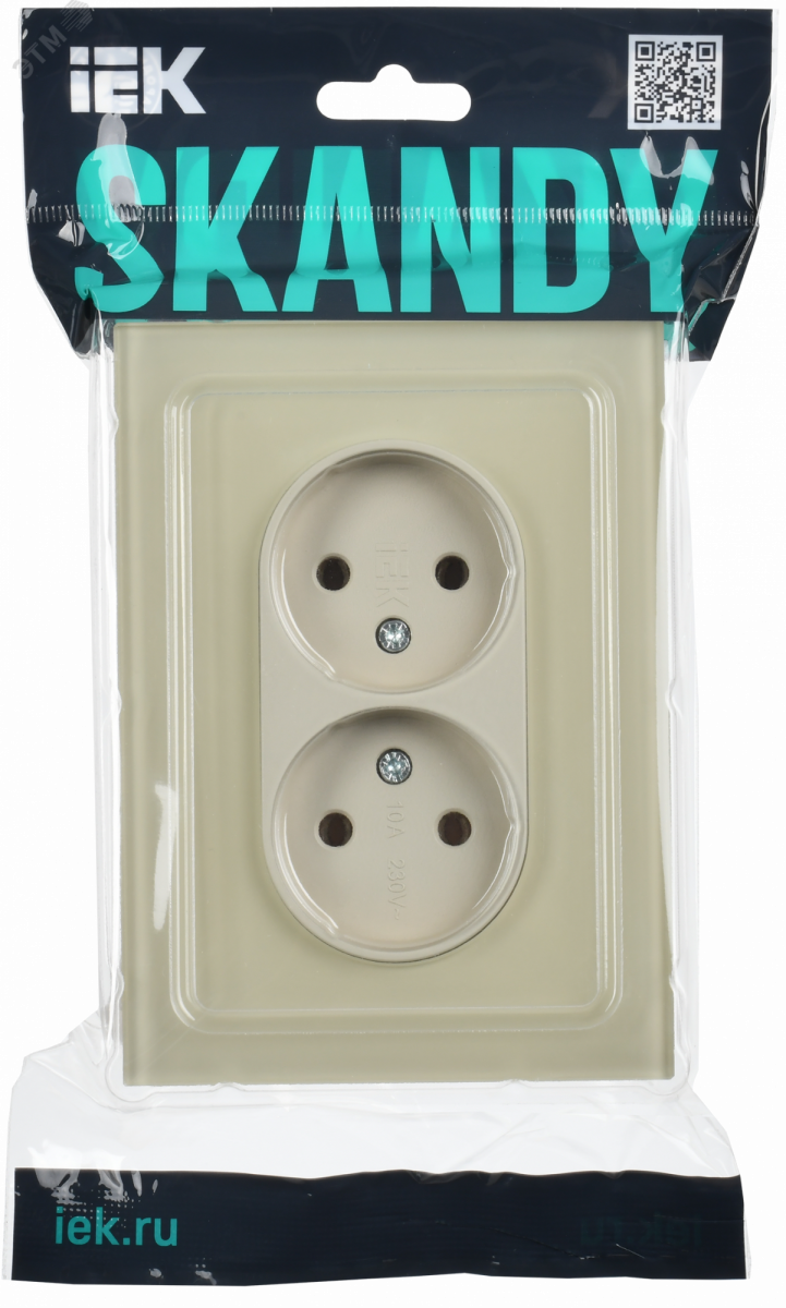 SKANDY Розетка 2-местная без заземления без защитных шторок для плоской вилки 10А SK-R03B стекло бежевый