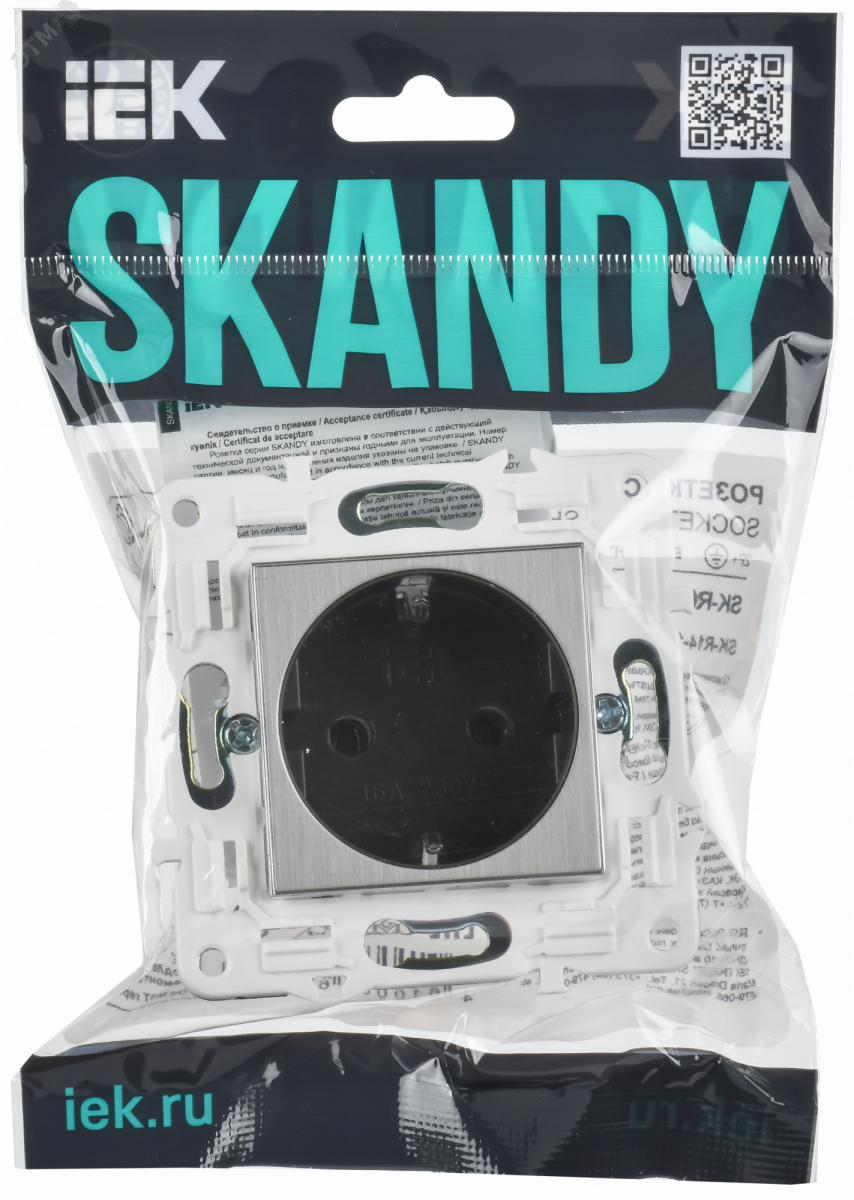 SKANDY Розетка с заземлением с защитными шторками 16А SK-R04N никель IEK