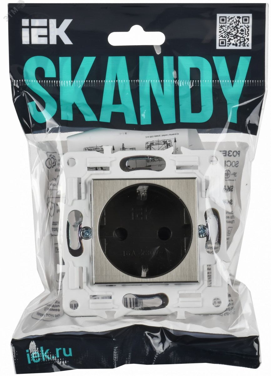 SKANDY Розетка с заземлением с защитными шторками 16А SK-R04N никель IEK