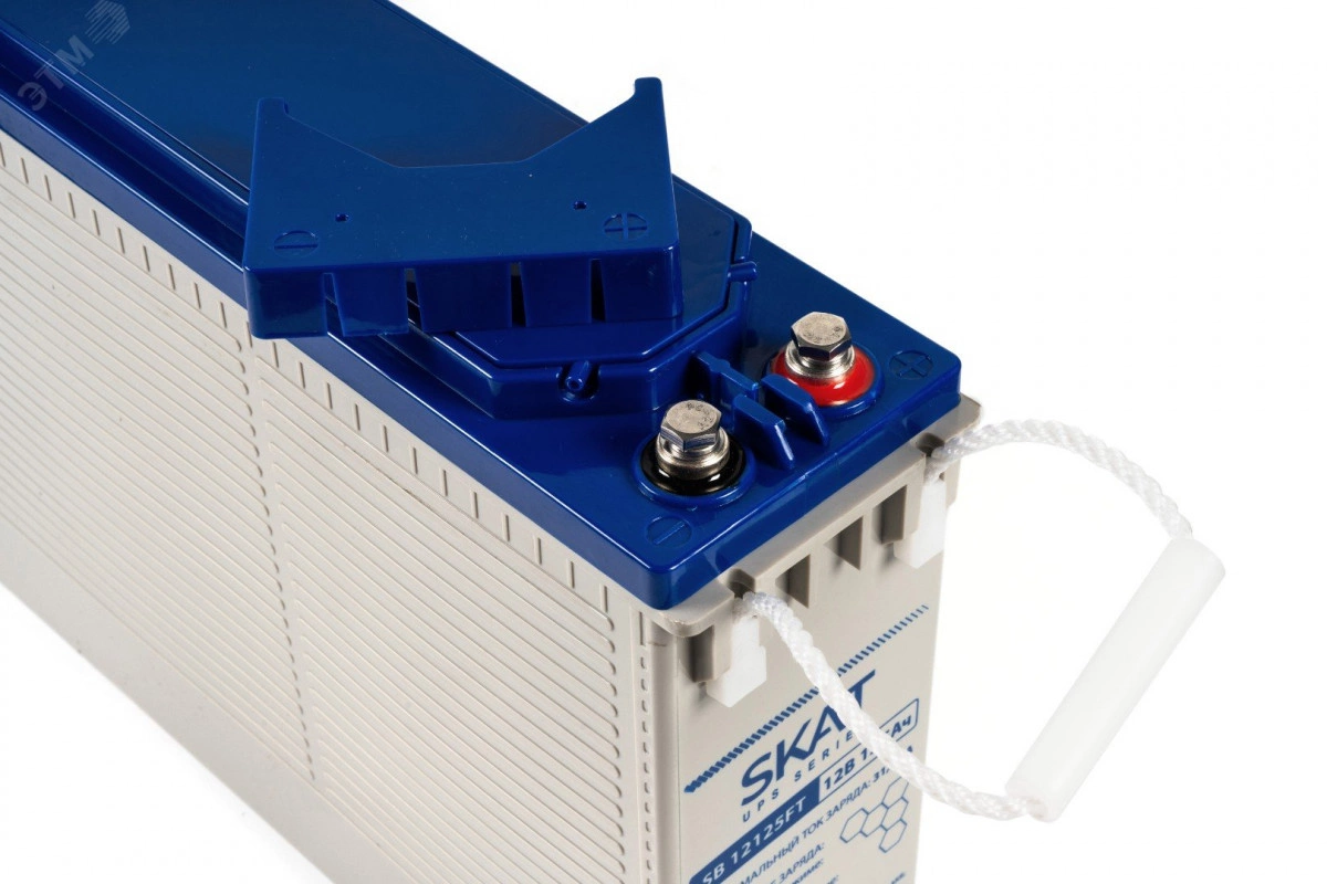 SKAT SB 12125FT - это АКБ с оптимизированной конструкцией корпуса для установки в телекоммуникационные стойки и шкафы. Расположение клемм на фронтальной части облегчает монтаж и обслуживание аккумулятора. Свинцово-кислотный необслуживаемый SKAT SB 12125FT, производимый по технологии AGM (Absorbent Glass Mat) с системой рекомбинации газов VLRA, предназначен для использования в составе системы резервного питания. АКБ герметичны, долговечны и надежны. Герметизация батарей проводится посредством использования клапана, обеспечивающего сброс избыточного давления газов в аккумуляторе для предотвращения деформации корпуса, - таким образом излишний газ не скапливается внутри батареи.