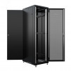 Напольный универсальный серверный шкаф предназначен для установки различного сетевого оборудования стандарта 19 дюймов (по ширине 485 мм) крепление которого соответствует требованиям ГОСТ 28601.2–90 (МЭК 60297). Пассивное и активное сетевое оборудование крепится на вертикальные 19 дюймов направляющие шкафа друг над другом. Доступ к оборудованию осуществляется со стороны передней и задней двери а также съемных боковых стенок шкафа.